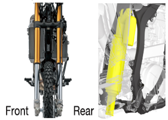 | ระบบกันสะเทือนหน้า | Inverted telescopic, coil spring, oil damped | ระบบกันสะเทือนหลัง | Link type, coil spring, oil damped |