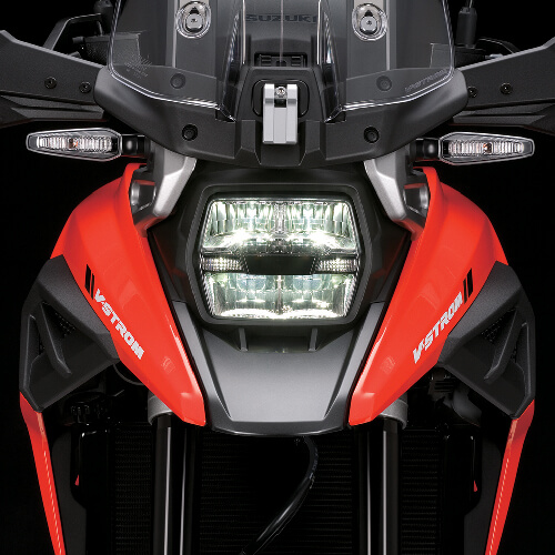 The disincentive styling incorporates elements of both Suzuki’s legendary DR-Z desert racer and large off-road model DR-BIG. The characteristic beak design first adopted by Suzuki stays true to Suzuki’s heritage while also further evolving the design to be more aggressive and bolder for new generation V-STROM.