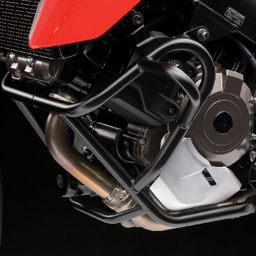 Accessory Bar หรือ Crash Bar คุณภาพเยี่ยมเสริมลุคให้ดูดุดันป้องกันและลดความเสียหายต่อตัวรถได้เป็นอย่างดี ซึ่งเป็นอุปกรณ์มาตรฐานของ V-Strom 1050XT