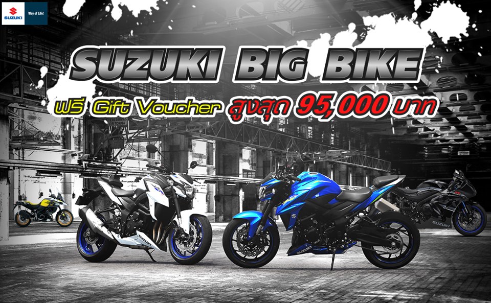 โปรโมชั่นโดนๆ ต้อนรับหน้าร้อนกับ SUZUKI BIGBIKE ———————————————————————————— ติดต่อสอบถามข้อมูลเพิ่มเติมได้ที่ SUZUKI CALL CENTER 02-533-1170 WEBSITE : HTTP://WWW.THAISUZUKI.CO.TH/