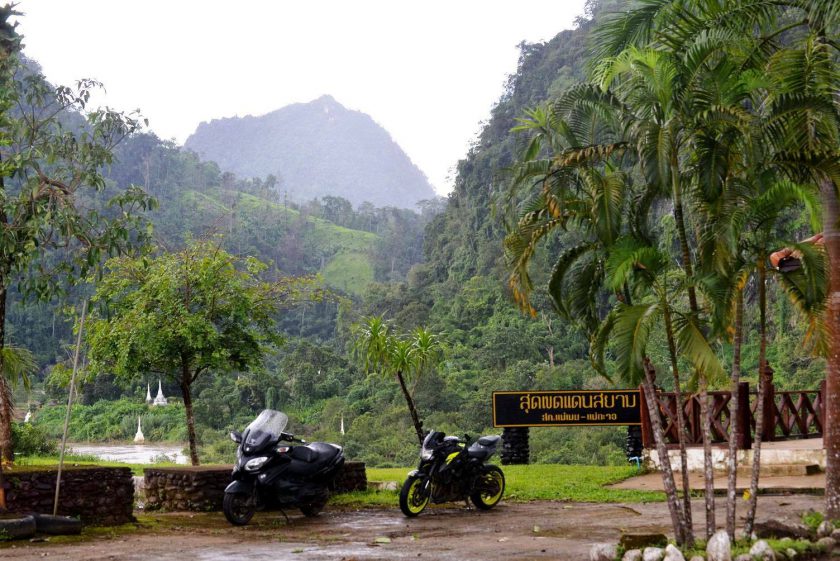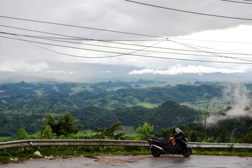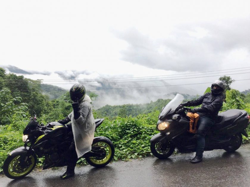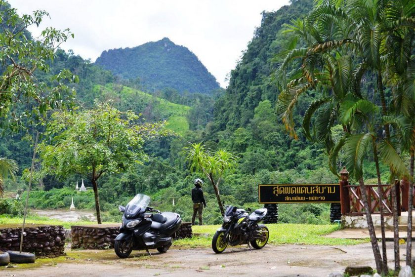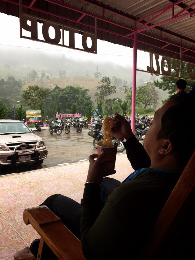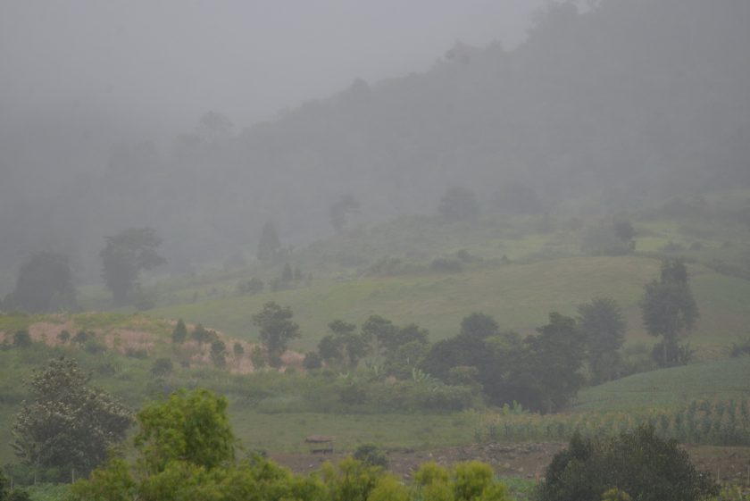 ก่อนจะเข้าเขตจังหวัดแม่ฮ่องสอน ฝนตกหนักตลอดทาง แต่ก็เพราะฝนนี่แหละ เราจึงได้เห็นวิวสองข้างทางเป็นเมฆหมอกปกคลุมภูเขาเป็นช่วงๆ อารมณ์ตอนนั้น นึกในใจตลอดว่า นี่ขี่อยู่แถวๆลาวเหนือหรือเปล่าเนี่ย