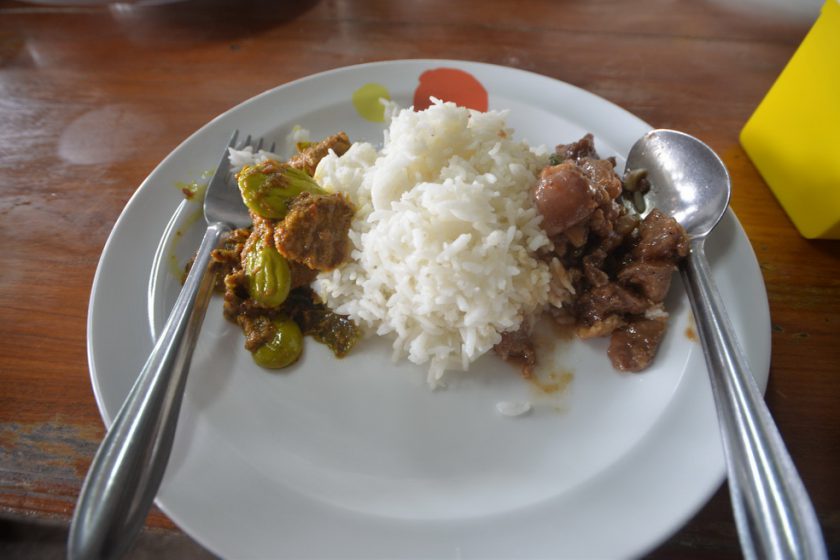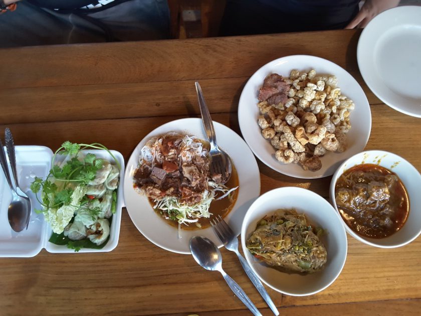 หิวก็แวะหาอะไรกิน…ผู้เขียนไม่รู้ว่าไปได้ passsive skill : good taste food traveler มาตั้งแต่เมื่อไร แวะหาร้านไปมั่วๆ มักะไม่พลาดที่จะโชคดีได้เจอร้านอร่อยราคาไม่แพงเสมอ ร้านนี้เพี้ยนชวนชิมขอแนะนำเลยจ้า อร่อย ไม่แพง วิวหลักล้าน ร้านเจ๊น้อย ในตัวอำเภอท่าสองยาง ตามลายแทงไปโลด