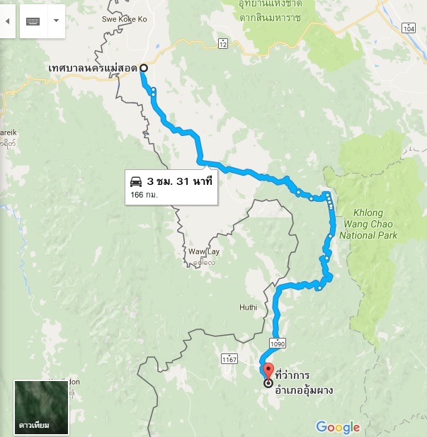 ระยะทางเพียงไม่ถึงสองร้อยกิโลเมตร แต่ประมาณร้อยละเจ็ดสิบเป็นโค้งคดเคี้ยวบนภูเขา…นั่นคือสภาพเส้นทางของถนนสายนี้ แต่ความงามและความสนุกในระดับความยากของเส้นทาง แนะนำเลยว่านักเดินทางด้วยสองล้อหรือแม้จะกี่ล้อก็ตามควรมาเยือนสักหลายๆครั้ง เพราะแต่ละครั้งที่มาก็มาบางอย่างที่ได้เสพย์แตกต่างกันไป มาหน้าฝนก็แบบหนึ่ง มาหน้าหนาวก็สนุกไปอีกแบบหนึ่ง เหมาะเป็นเส้นทางสำหรับระบายอารมณ์บางอย่างแล้วเอาอารมณ์นั้นมาขี่รถทั้งวันมาสะบัดทิ้งออกไปตามโค้งเขาลำเนาไพร เพื่อมานอนรับอากาศบริสุทธิ์ในอุณหภูมิที่เย็นสบายของอุ้มผางในฤดูฝนสักคืนสองคืน
