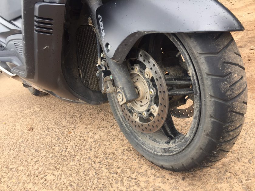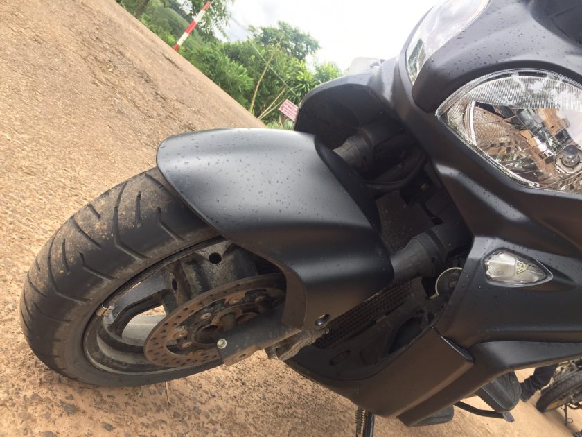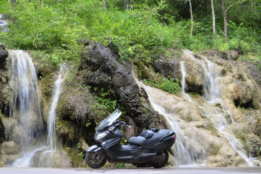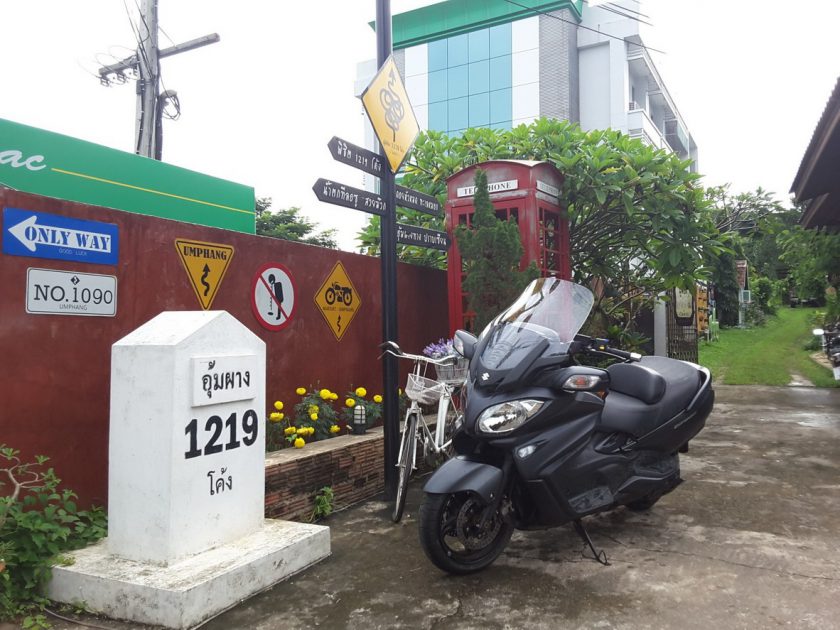สภาพของถนนช่วงที่เลี้ยวจากถนนเอเชียจะไปแม่สอด ร้อยละสามสิบของเส้นทางอยู่ในสภาพกำลังก่อสร้าง และประมาณร้อยละห้าอยู่ในสภาพที่ถ้าฝนตกคือหนังชีวิตดราม่าเข้มๆสักเรื่องนี่เอง ทันใดนั้นเองเจ้า BURGMAN 650 ABS จำต้องแปลงร่างเป็น BURGMAN 650 Touring Adventure ชั่วคราว ทำให้รู้เลยว่าเมื่อช่วงล่างต้องเจอกับสภาพถนนดังกล่าวการใช้งานจะอยู่ในสภาพไหน ยึดเกาะเพียงใด