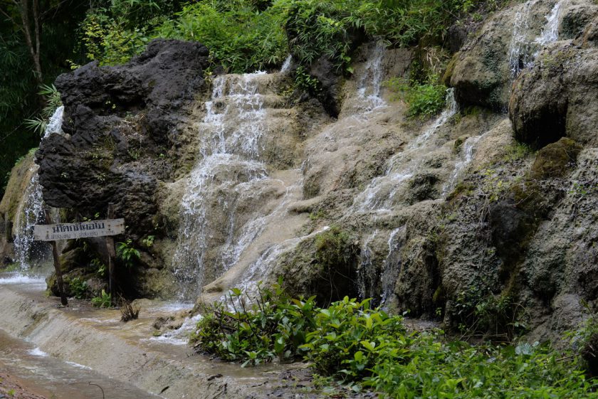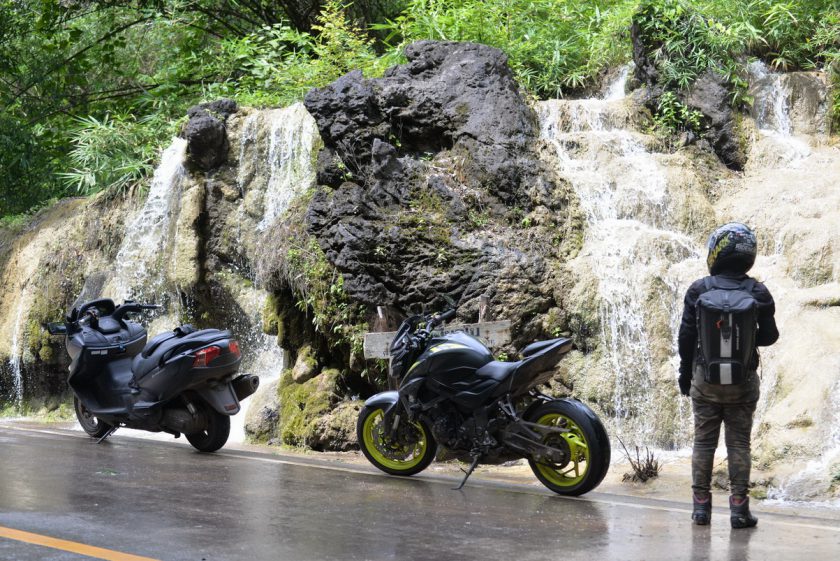 แต่ในฤดูฝน เราจะได้พบกับน้ำตกหินปูนขนาดย่อมที่สาดซัดละอองน้ำกันริมทางหลวงหมายเลข 105 กันแบบนี้เลย!!