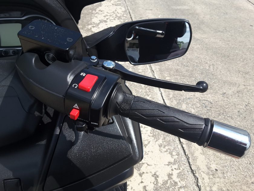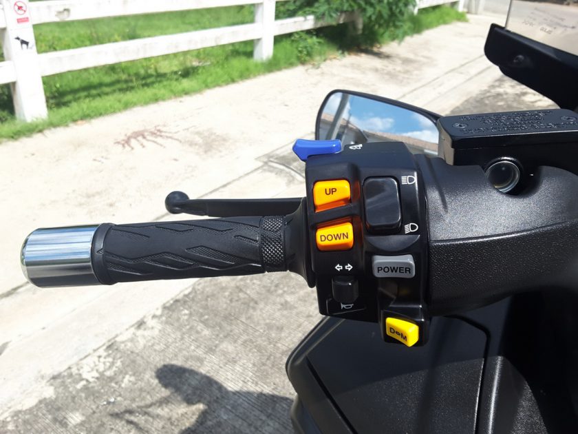 ลูกเล่นเด็ดๆอย่างชิลด์บังลมหน้าที่ปรับขึ้นลงได้ด้วยมอเตอร์ไฟฟ้า สวิทช์ปรับเลื่อนขึ้นลงจะอยู่ที่ประกับขวาด้านล่างไฟฉุกเฉิน ทำให้สะดวกดีมากในการเดินทาง