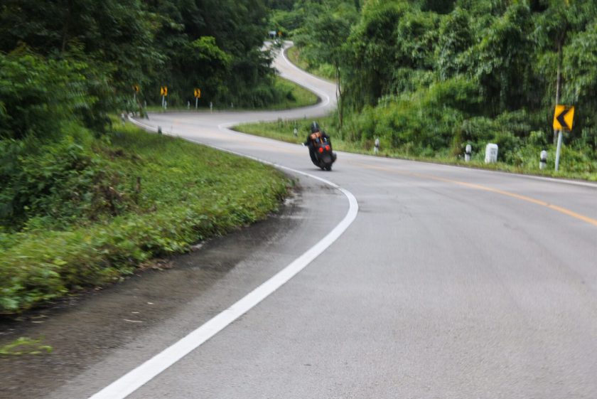 จากปากทางเข้าวัดมงคลคีรีเขตร์ ถือเป็นจุดเริ่มต้นของถนนช่วงหนึ่งที่สายนิยมโค้งไม่ควรพลาดด้วยประการทั้งพวง ถนนเพิ่งทำเสร็จใหม่ๆและไม่ค่อยมีรถบรรทุกหนักมาวิ่งแถวนี้ให้ทางพัง(ไม่ใช่ถนนสายเศรษฐกิจก็ดีไปอีกอย่าง) ลาดยางอย่างดี ยางมะตอยที่ผสมหินกรวดในขนาดที่เหมาะสม นี่มันน้องๆแทรคเซอร์กิตเลยก็ว่าได้ ขนาดความกว้างของถนน มุมองศาแคบกว้างของโค้ง ความลาดชันในการไต่ขึ้นและไหลลง ในช่วงเวลาที่ไปเจอทั้งทางเปียก ฝนตก ทางแห้งๆ ทางหมาดๆ ครบทุกกระบวนท่า